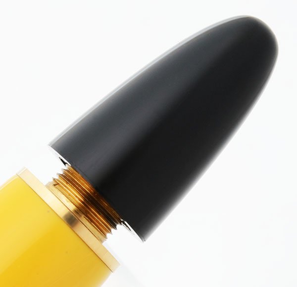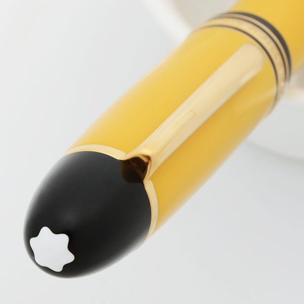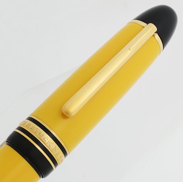 Condition Near mint condition with just some light polishing marks and microscratching. This is a hefty beautifully colored pen that looks new. The cap has a few areas where there are subtle swirls in the yellow material. The black end pieces and cap ring are beautiful. The white Montblanc emblem is perfect. The imprints are all clear. The section has some horizontal capping lines around the view window. No cracks, chips, dings, or dents.