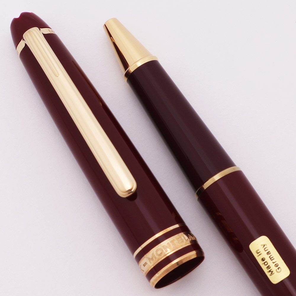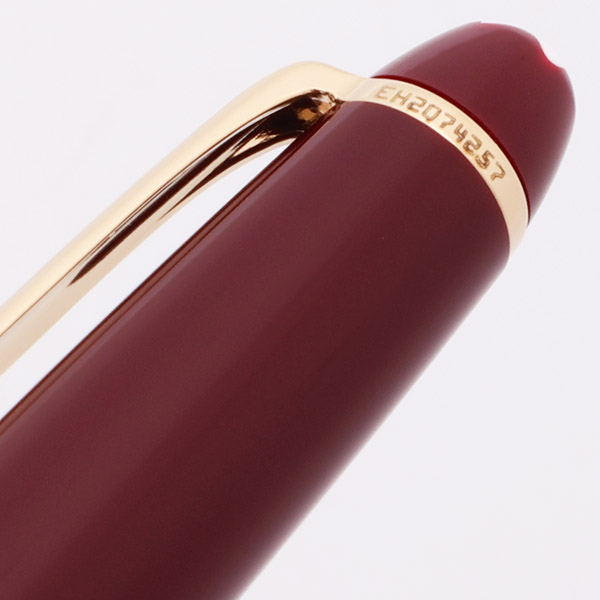 Color Burgundy with gold plated trim. There is a serial number on the clip band: EH2074257. Made in Germany sticker on barrel portion of the pen.