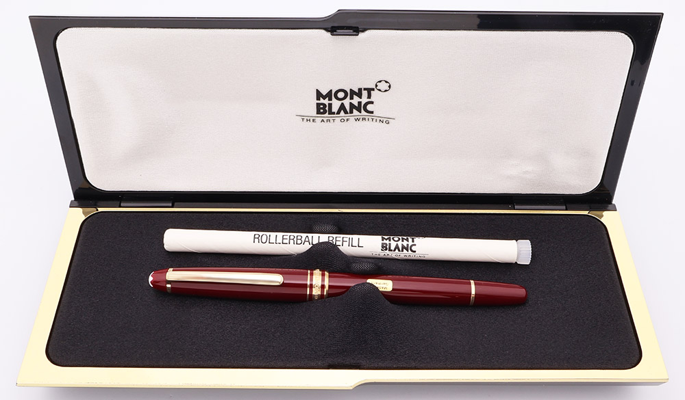 Filling System Takes Montblanc or threaded international rollerball refills. They are just like standard international rollerball refills but have threads near the tipping to hold the pen in place. A Montblanc rollerball refill is included in a plastic tube in the box.
