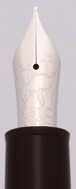 Nib FINE 14k Montblanc nib. The nib is engraved with an image of a sheep that the aviator drew for the little prince. It has a plastic feed.
