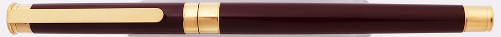 Condition Excellent condition with no cracks, chips, or dents. This is a slim, trim, sleek fountain pen in a nice shiny burgundy color. The cap and barrel have light wear with a light cluster of scratches on the lower part of the barrel. The wide cap band has light microscratching and one small ding. The gold end of the barrel has moderate scratching. The clip and the top finial on the cap have light microscratching. The Montblanc emblem is perfect. The imprints are clear.