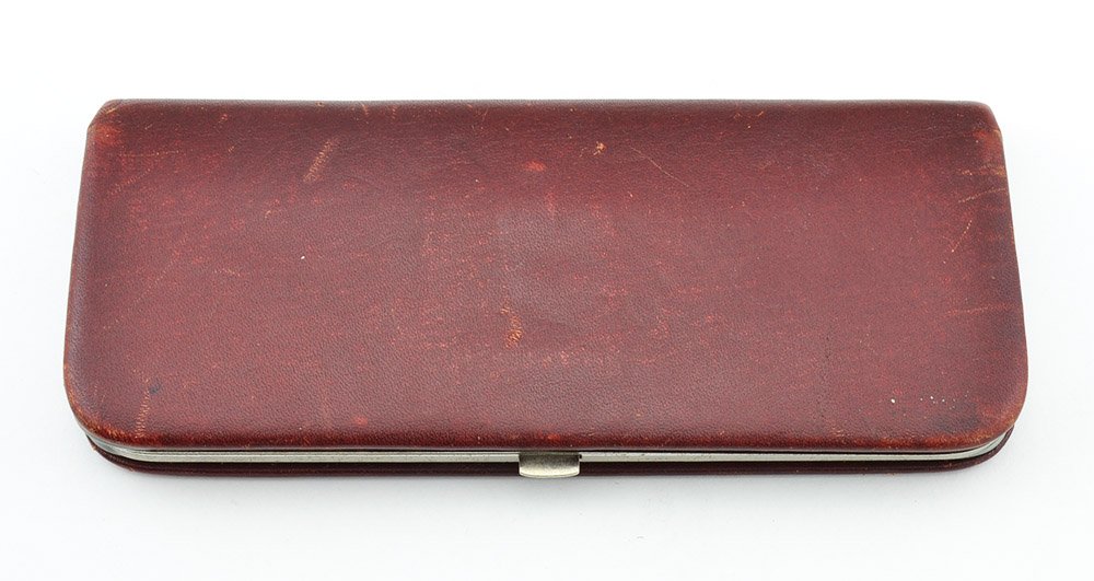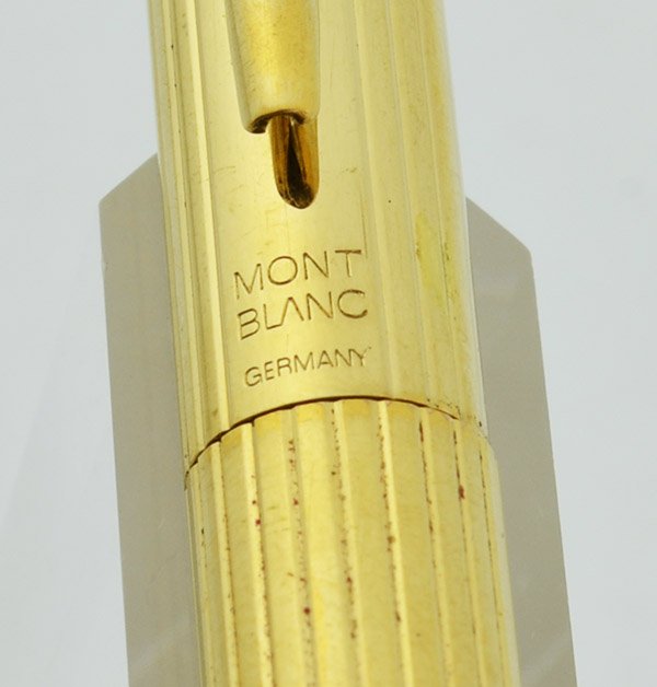 Condition Very nice condition. There are a couple of tiny chips in the gold plating on the cap and two tiny, light indents. There's light scratching and wear on the cap and barrel and some light brassing on the clip (see photos) as well as some minor wear around the Montblanc icons on the ends. No cracks, dents, or personalization. The imprints look good and the pen is working very well. The leather case is a little worn but looks lovely and the clasp still works well.