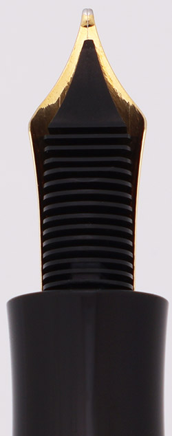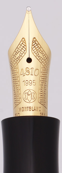 Nib Medium 18k nib. It's very smooth and writes like a narrow fine. We generally find Montblanc nibs to run narrow. The nib is slightly springy and is decorated with a diamond and squares pattern. The nib size sticker is still attached to the barrel.