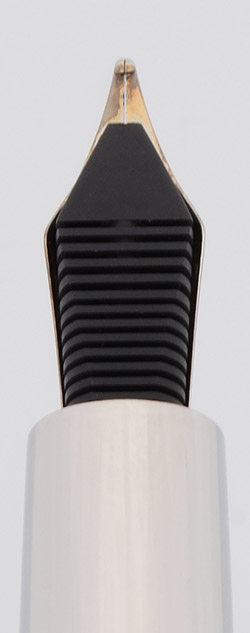Nib Broad Montegrappa steel nib, with a slightly antiqued/blackened finish.