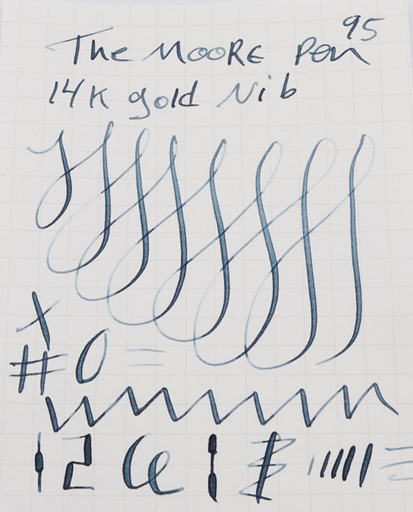 Nib FLEXIBLE FINE 14k Moore #4 nib. See the writing sample below.