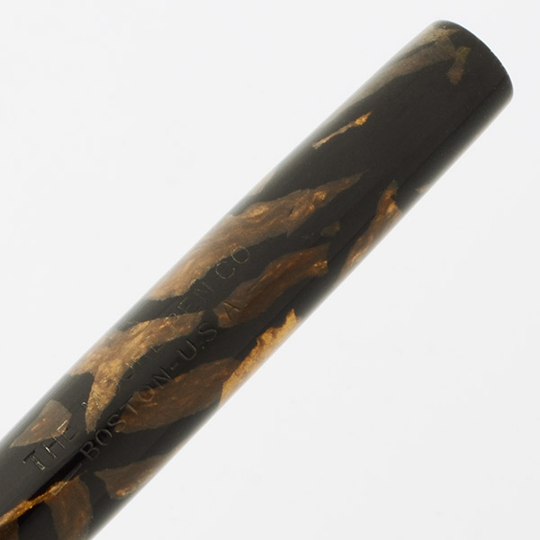 Color Black with bronze marbling and gold plated trim. The cap band is 1/8" and has edging on top and bottom.