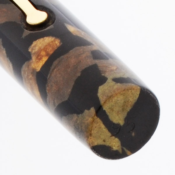 Condition Superior condition with no cracks, chips, dents, or dings. This is a dark, striking pen that is shiny and smooth to the touch. The barrel has faint marks caused by the cap lip. The lever looks good. The cap has light scratches. The cap band has microscratching and no plating wear. The clip has plating wear on the ball end. The 95 etched on the end of the barrel is clear. The imprints are crisp.