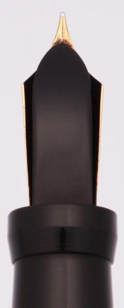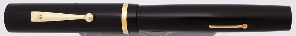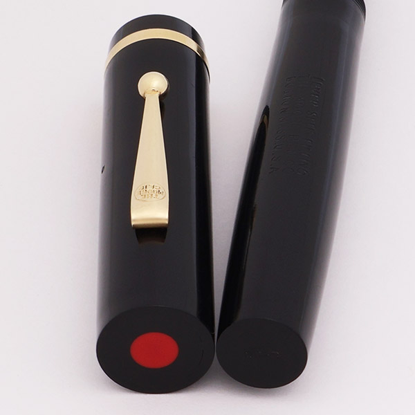 Condition Superior condition with no cracks, chips, dents, or dings. This is a striking, shiny pen in a classic design with a deep and rich color. The color is really dark black and very even all over. The barrel and cap have light to moderate scratching. The clip and lever have light plating wear along the sides, but no brassing. The cap band has light scratching, but no brassing or plating wear. The imprints are clear.