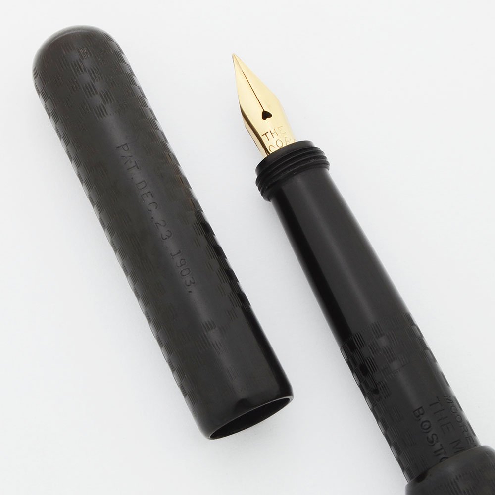 Condition Superior condition. The checkerboard chasing looks perfect as does the main barrel imprint. The 250 at the end of the barrel is a bit difficult to read. The hard rubber is very black. There is one mark on the end of the pen that looks a bit like, "T."