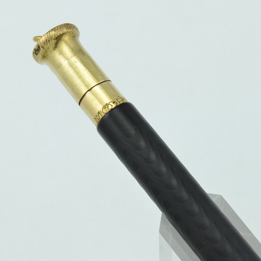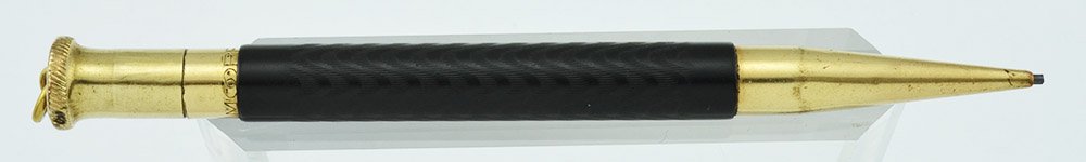 Color Black Chasing Hard Rubber with gold filled end pieces and trim.