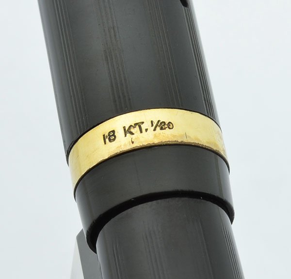 Color Black hard rubber with a lined chasing pattern, 18k 1/20 gold filled trim.
