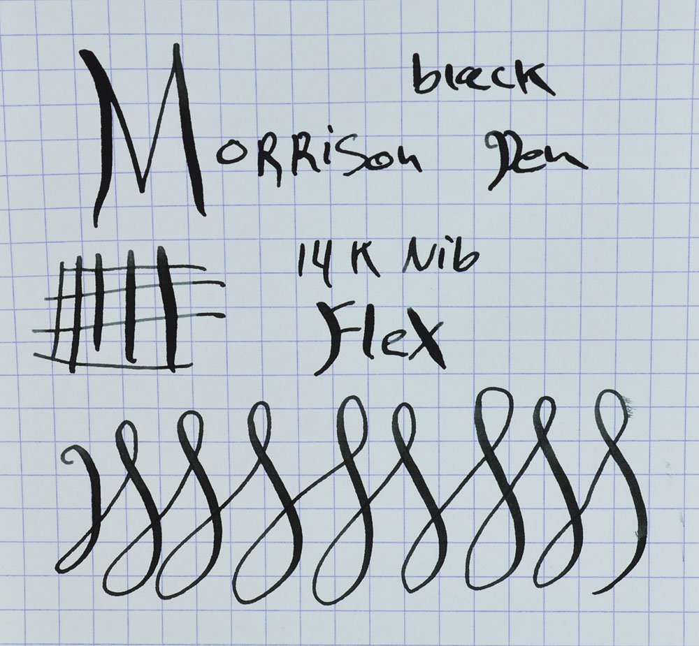 Nib MEDIUM Morrisons 14k nib is somewhat flexible and smooth, with pretty nice tipping material. See writing sample below.