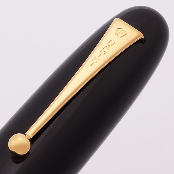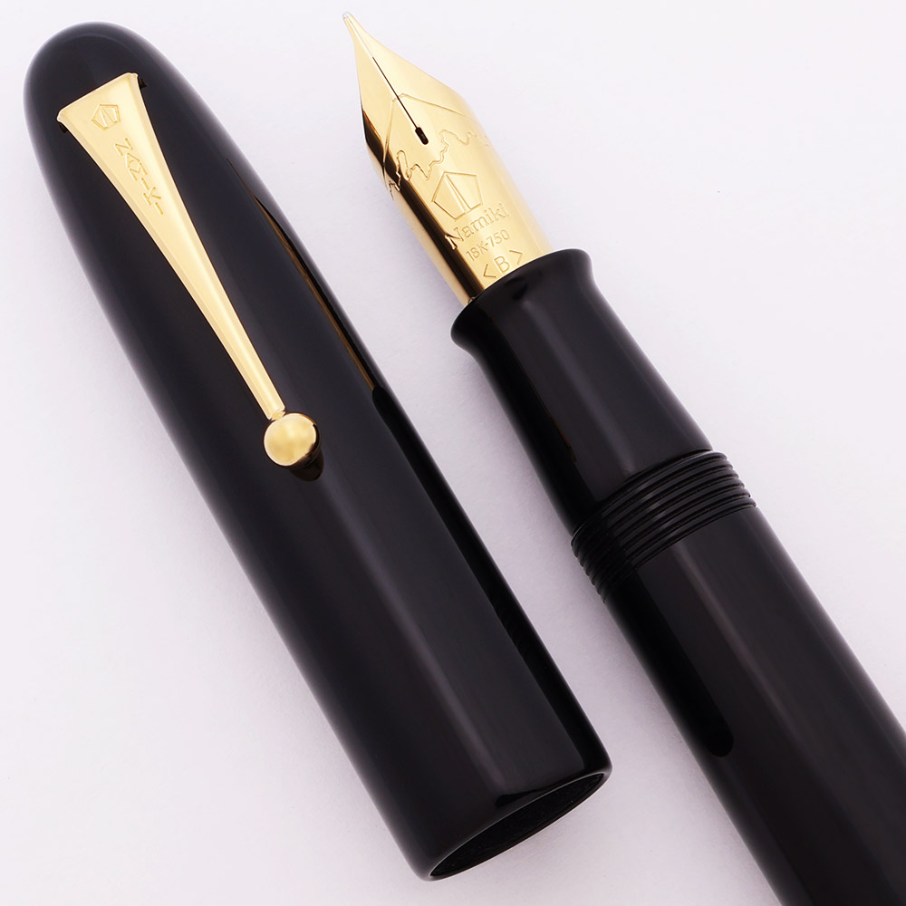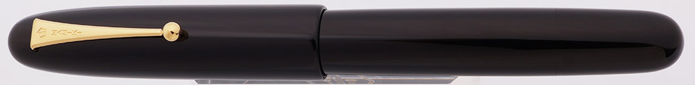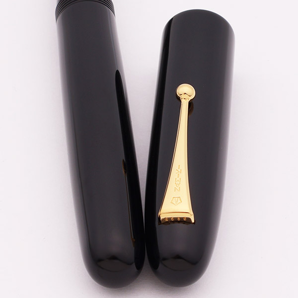 Color Deep Black urushi lacquer over ebonite. Gold clip and nib. The feed is also urushi on an ebonite base.
