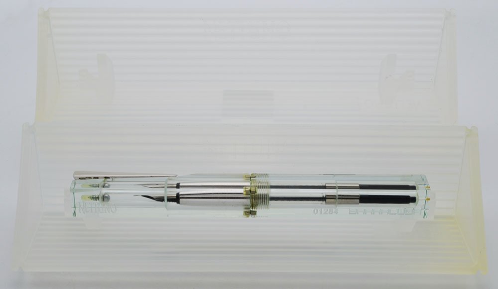 Condition Near mint condition, though the packaging is a little worn. No scratches, chips, dents or dings. No evidence that the pen was ever inked. Barrel is engraved with the number 01284. The pen is in the original plastic Barracuda box within a white cardboard Nettuno 1911 box.