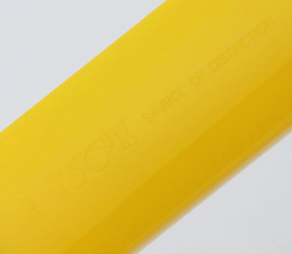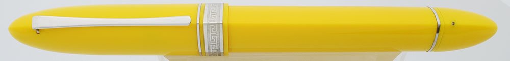 Color A bright yellow with silver trim. The cap has two bands, a thin one and a wide Greek key pattern filled one.