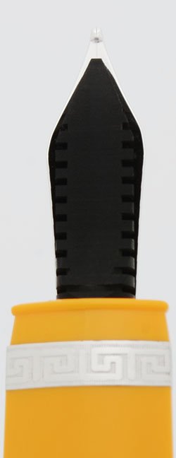 Nib Medium steel nib. It is labeled M on the side of the nib.