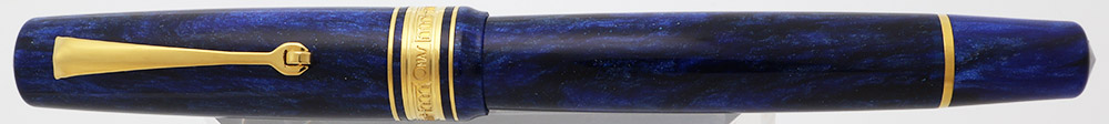 Condition Near mint condition with no cracks, chips, dents, or dings. This is a shiny "starry night" deep, dark blue pen that has small diamond sparkles throughout. It is a very striking and gorgeous pattern -- and can be mesmerizing while it twists and turns. The cap and barrel are beautiful, smooth and ethereal. The cap band is beautiful with images of the porticoes of Bologna. The clip has light microscratching. The imprints on the cap band are clear. No box or paperwork.
