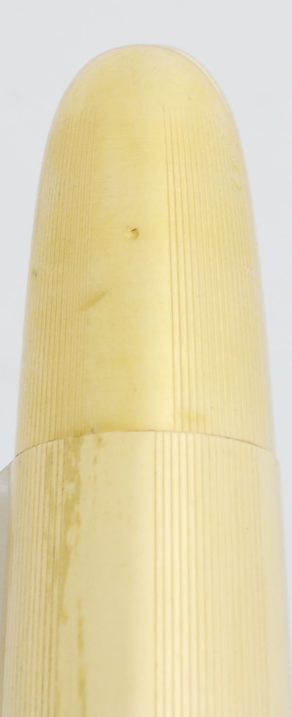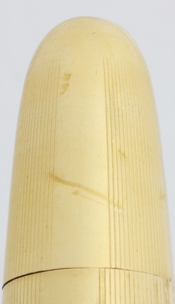 Condition Very nice with a couple small dents on the barrel. The cap is really nice with no dents, but there is some brassing on the clip. There are some scratches on the hood, it looks like it's been sanded or shaved, and there's a short crack below the feed.
