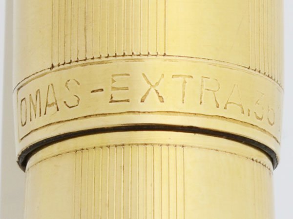 Manufacturer and Year Omas Extra 361 (as marked on trim band), Italy. This model, as far as we can tell, was made from 1961 to 1971. We think this is the 361R model with the complete overlay. There were a few different versions of the section, this seems to be the one that originally had a white dot embedded. Here's a very knowledgeable discussion of this era of Omas pens on the Letizia Iacopini website.