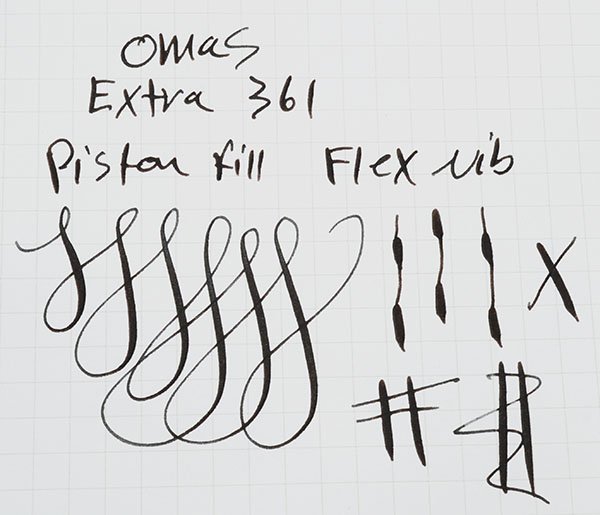 Nib Flex gold nib has good tipping material and has flex. See writing sample below.