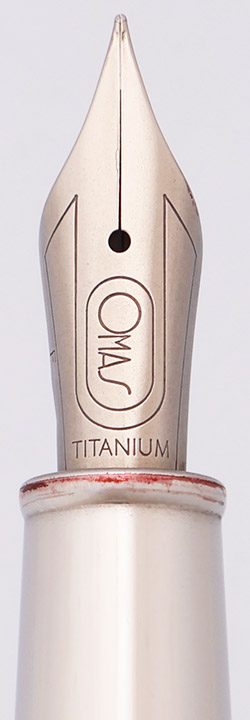 Nib Fine titanium nib. It is labeled F on the side of the nib.