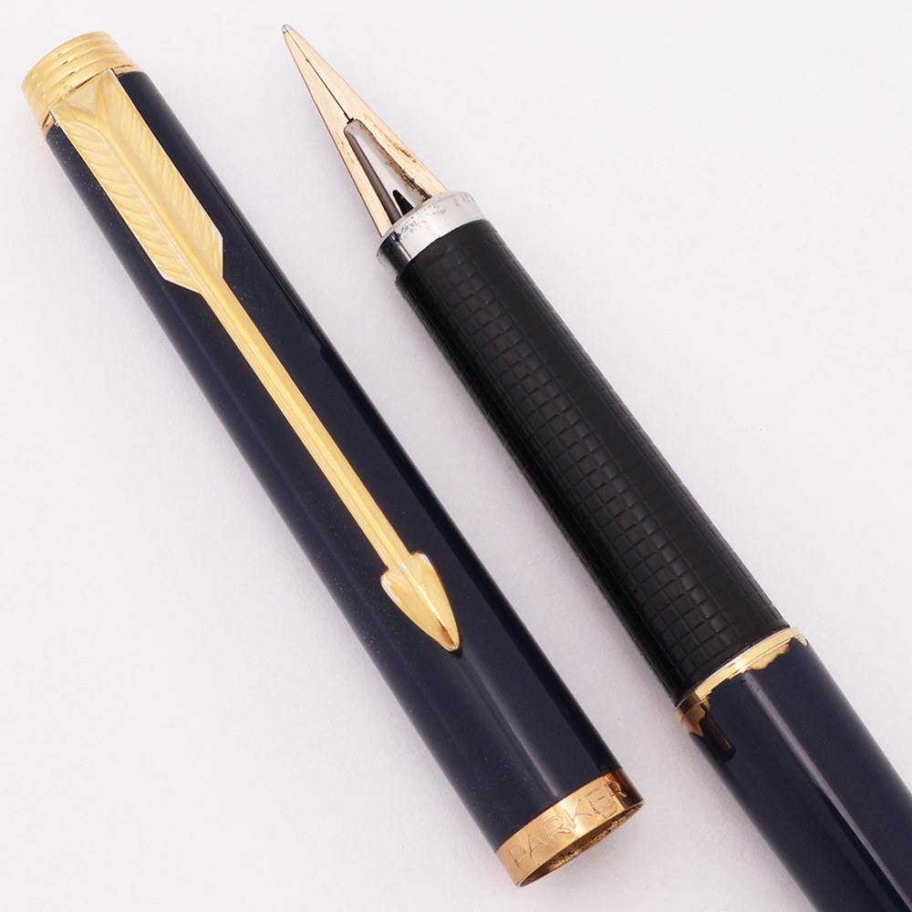 Color Dark blue lacquer with gold trim. Gold arrow clip. Black ridged section.