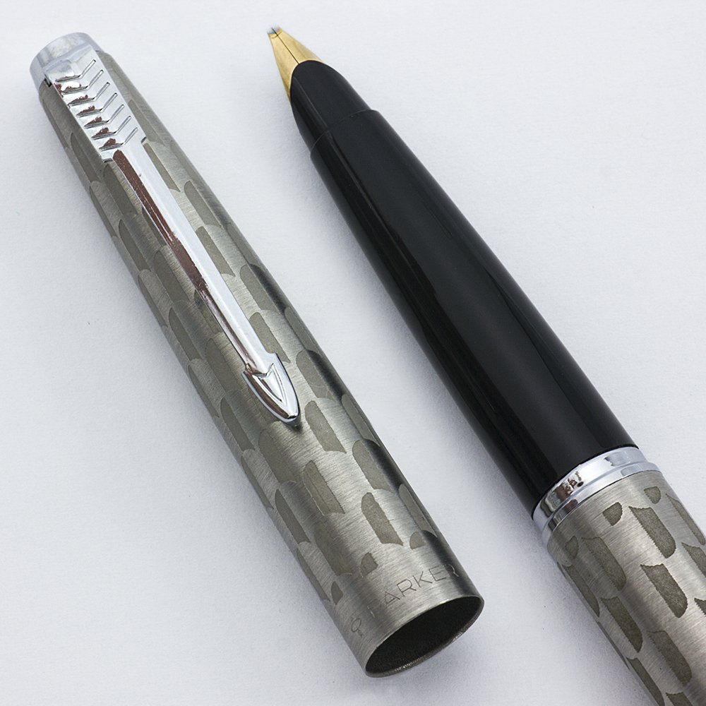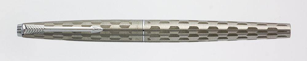 Product Name Parker 45 Harlequin, it seems "harlequin" meant repeating diamond pattern but Parker incorrectly took it to mean any repeating pattern. This was also called the Parker 80.