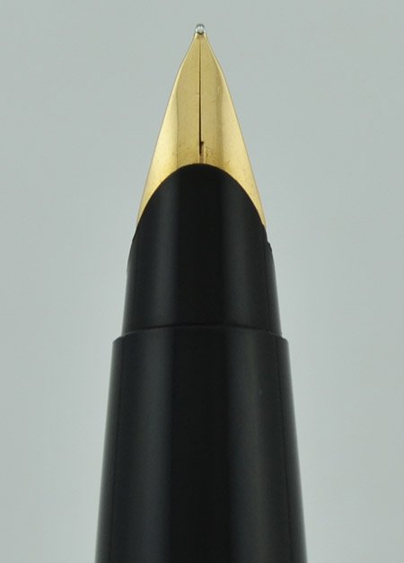 Nib FINE 14k nib made in the USA. It's smooth and mostly firm. The section is labeled F.