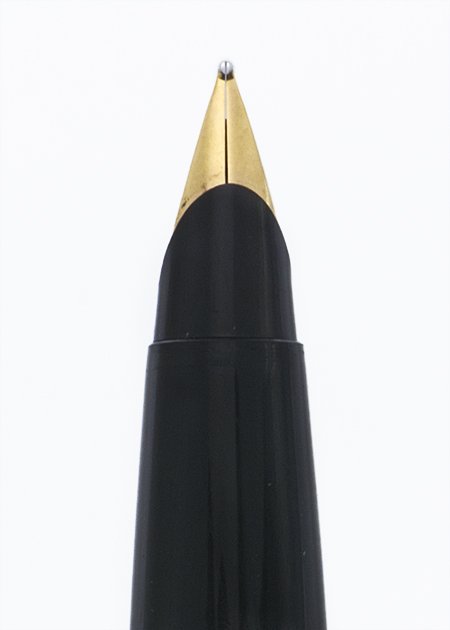 Nib MEDIUM 14k nib made in the USA. It's smooth and mostly firm. The section is labeled M which matches the nib. Like many Parker 45 nibs, this one has a very large amount of tipping material.