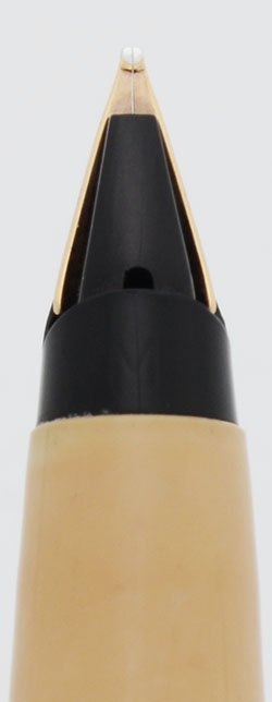 Nib MEDIUM 14k nib. There is a cursive italic grind on it, done here at PSP by our own Nivardo Sanchez.