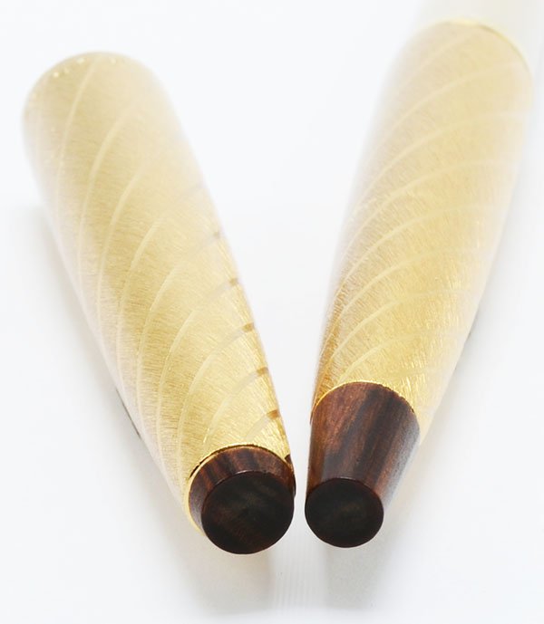 Color Matte gold with a spiral design, "wood effect" end pieces and section. The section is tan colored.