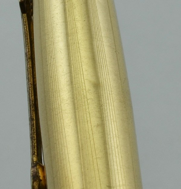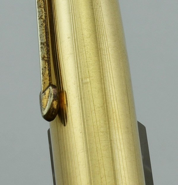 Condition Very nice condition with a cap that has some flaws. There is one dent in the cap and a few shallow impressions. Around the clip, there are 4 bubbles in the gold fill. The cap also has plating wear on the clip and miscroscratching. The barrel looks great with low handwear but there are some marks on the section caused by cap posting. Working very well.