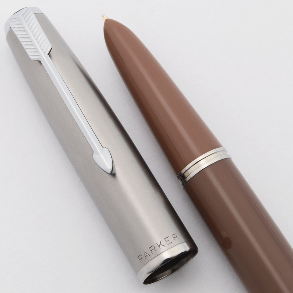 Color Cocoa plastic body with a Lustraloy steel cap with the shorter arrow clip and pearlescent cap jewel.