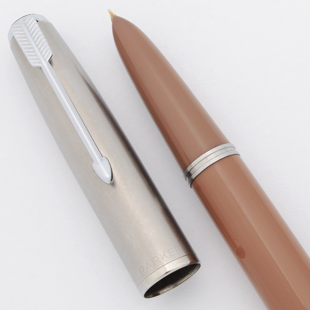 Color Cocoa with stainless steel "Lustraloy" caps and arrow clips. Pearlescent cap jewels.