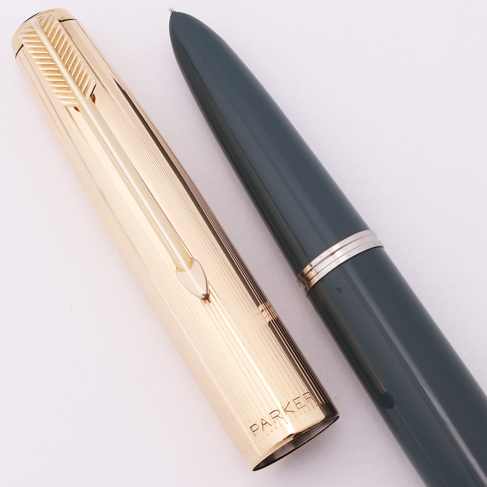 Color The color is dark blue-ish grey aka "Navy Grey". The cap is 1/10 12K GOLD FILLED and has a pattern of converging lines. The cap has an arrow clip. Pearlescent cap jewel.