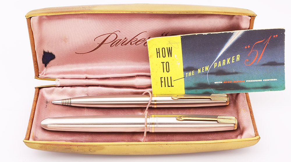 Product Name Parker 51 Aerometric Flighter, this is the earlier version with a gold plated band. They made this version from 1950 to 1960.