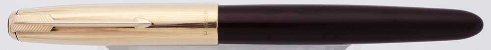 Color Burgundy barrels with 1/10 12k gold filled caps, with the converging lines pattern. Pearlescent cap jewels.