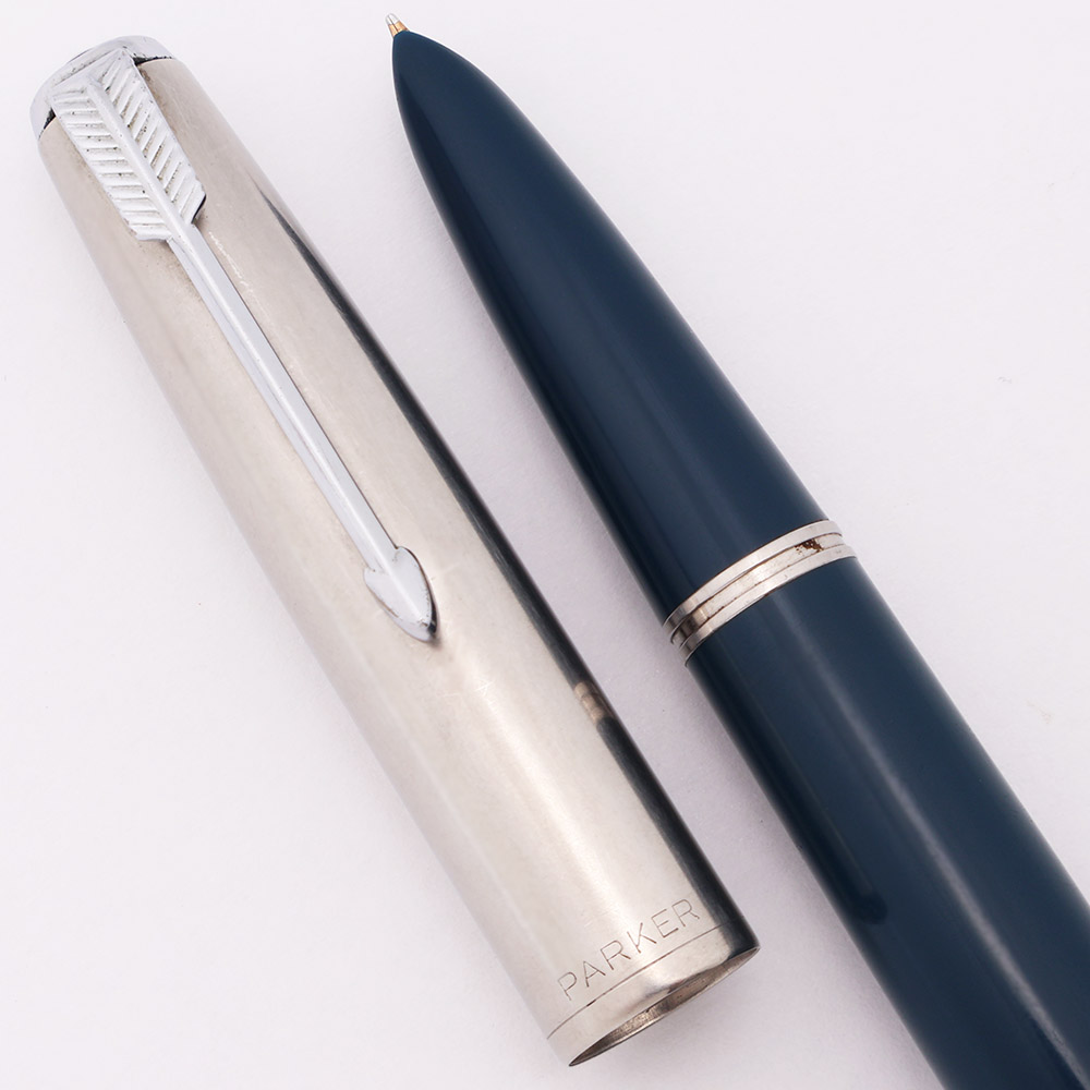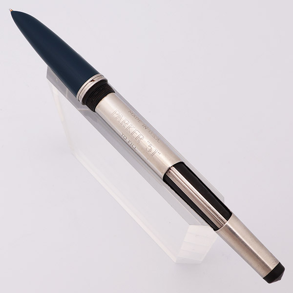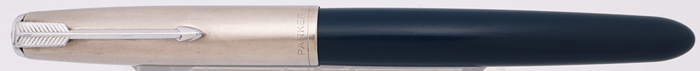 Condition Excellent condition with no cracks, or personalization. This is a classic pen in a dark blue color that is shiny. The barrel has marks caused by the cap lip as well as moderate microscratching. The section has long scratches from capping. The cap has heavy microscratching, a shiny line at the clip end, and a dent plus some pitting on the side opposite the clip. The clip and clip ring have moderate microscratching. The top jewel has yellowed and is scratched along the edge. The imprint is clear.