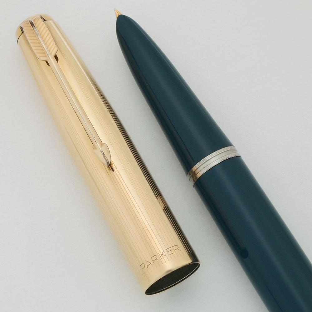 Color The color is teal with 1/10 12k rolled gold cap with a pattern of converging lines. It has gold filled trim, an arrow clip, and a pearlescent cap jewel.