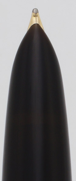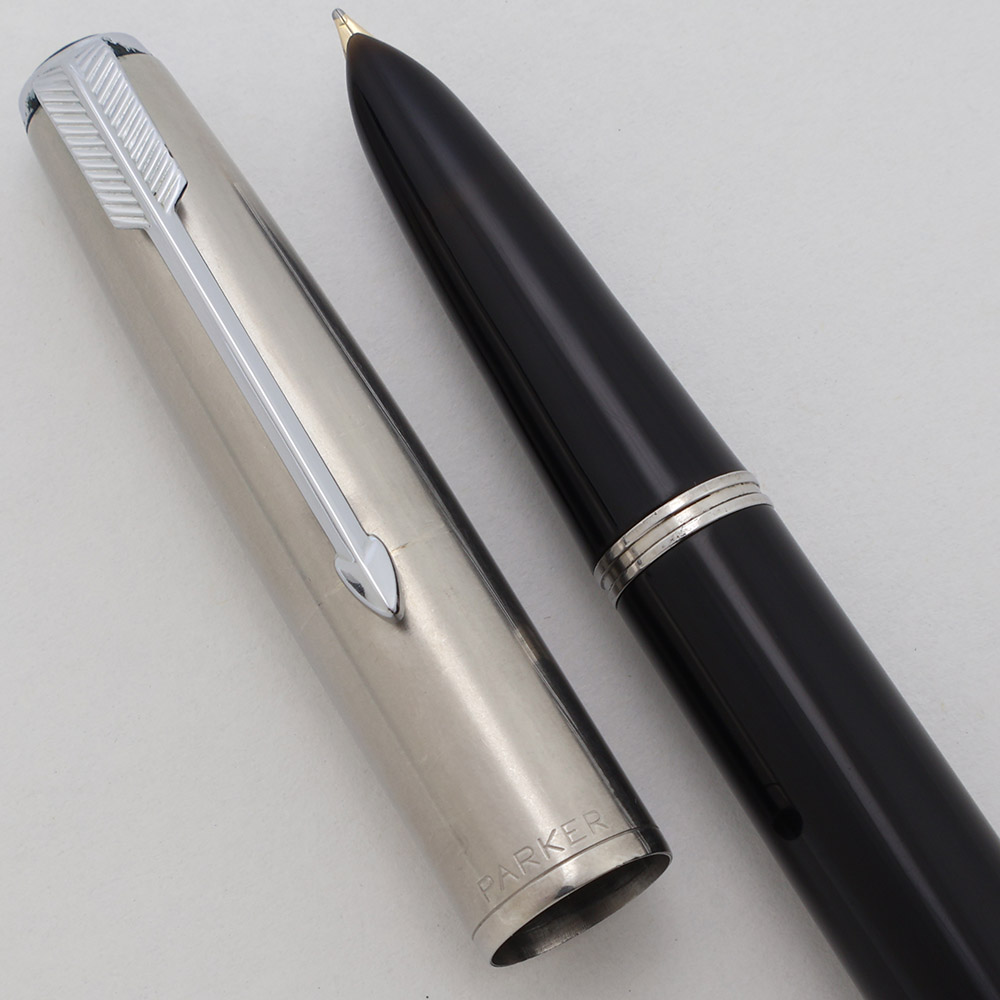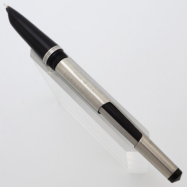 Color Black barrel and section with a stainless steel "Lustraloy" cap and an arrow clip. Pearlescent cap jewel.