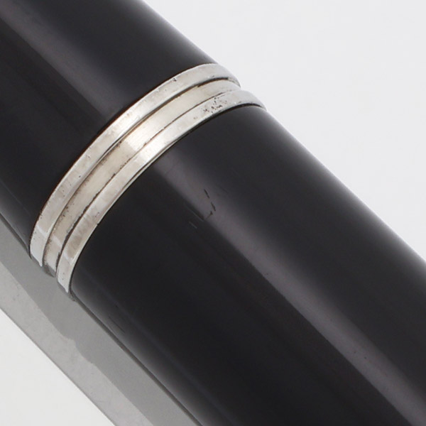 Condition Excellent condition with no cracks, chips, dents or dings. This is a classic fountain pen in classic black with a shiny lustraloy cap. The section has light scratches from capping. The barrel has light to moderate scratching all over. The cap has light to moderate scratching all over. There is a shiny mark at the clip end and there are deep lengthwise scratches on either side of the clip. The clip has light microscratching. The clip ring has corrosion where the clip connects. The pearlescent jewel looks good. The barrel imprint is faint and just barely readable.