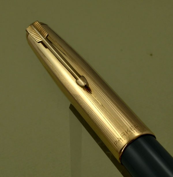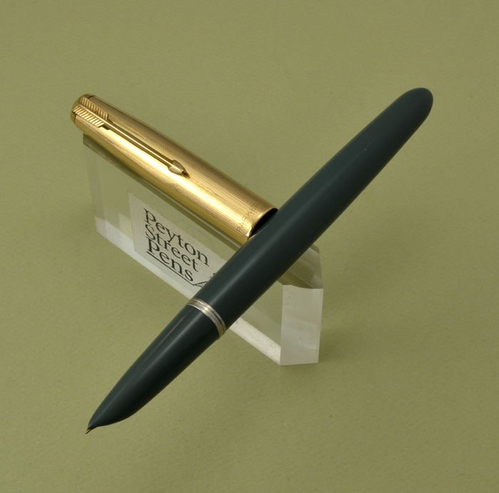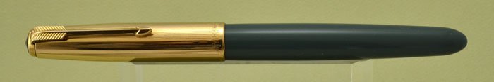 | Color | Dark grey ("navy grey") body, gold filled cap has fine converging lines. Pearlescent cap jewel. |