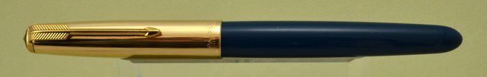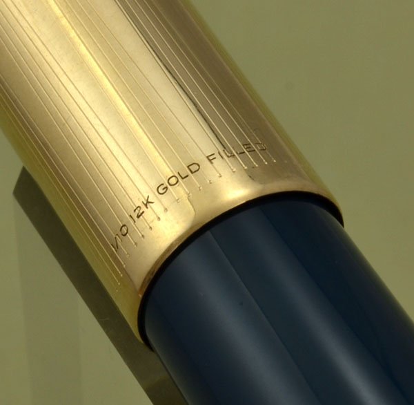 Color | The color is dark greenish blue (teal). 1/10 12k gold filled caps with short arrow clips and a pattern of converging lines. Pearlescent cap jewels. |