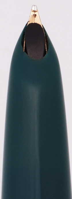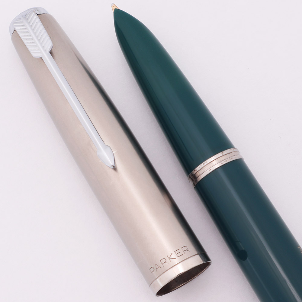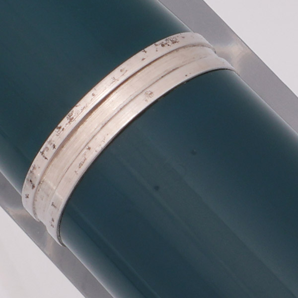 Color Teal blue with brushed stainless steel cap and clip. Pearlescent cap jewel.