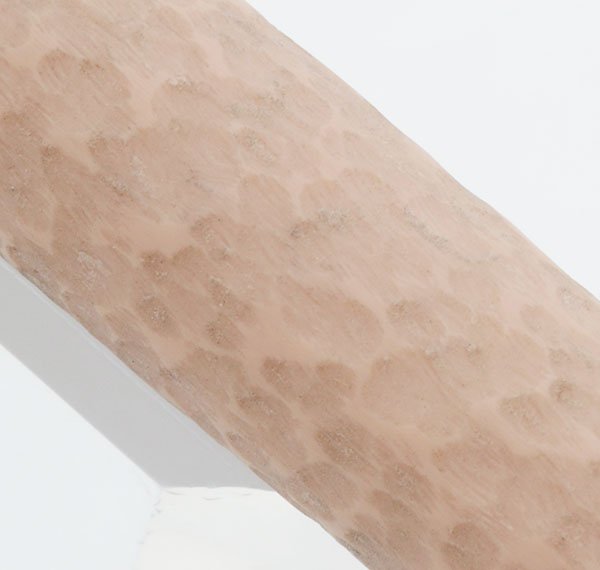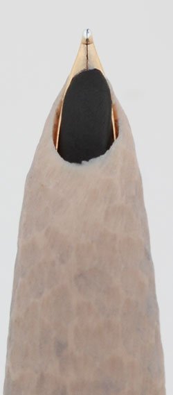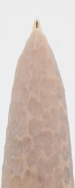 Color Beige barrel and section in a bark pattern. Lustraloy (bruhed stainless steel) cap, arrow clip and a pearlescent cap jewel.