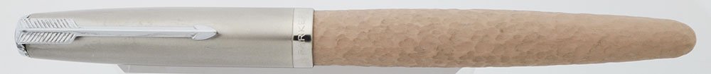 Manufacturer and Year Parker and Ariel Kullock - the pen was assembled here at Peyton Street Pens using a combination of Parker new old stock and vintage parts. The barrel and hood are original Parker parts which have been given a bark-like texture. The nib is new old stock, never used, an original Parker component. The filling system came from a Parker 51 aerometric model, and the cap came from a late 1940s-era Parker 51.