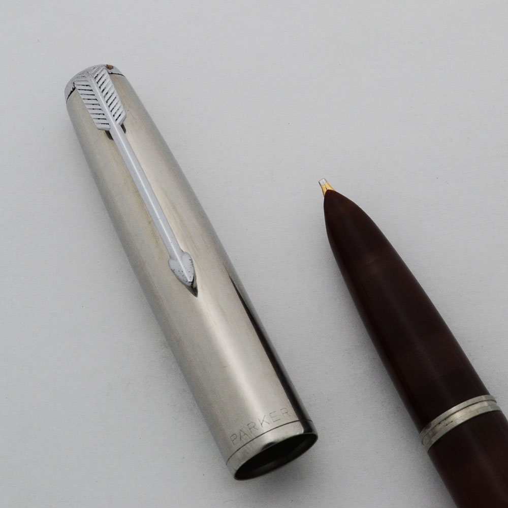 Manufacturer and Year Components from assorted manufacturers: Parker made the filling system and (prior to re-tipped) the nib, Ariel Kullock made the barrel, Greg Minuskin re-tipped the nib, and PSP assembled the pen -- The latest adjustments were made in 2018. The pen is a combination of Parker parts and re-manufactured parts. Everything but the barrel-hood is new old stock, or gently used, original Parker components. The filling system came from a Parker 51 aerometric model.