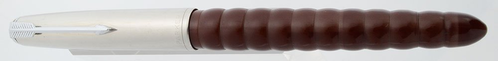 Color Smooth shiny cap from a Parker 51 Special complete with black jewel. The section and barrel are a semi-transparent red brown that Kullock calls Burgundy. The barrel has smooth bumps. Kullock makes several bumpy patterns and this one is called "waves."