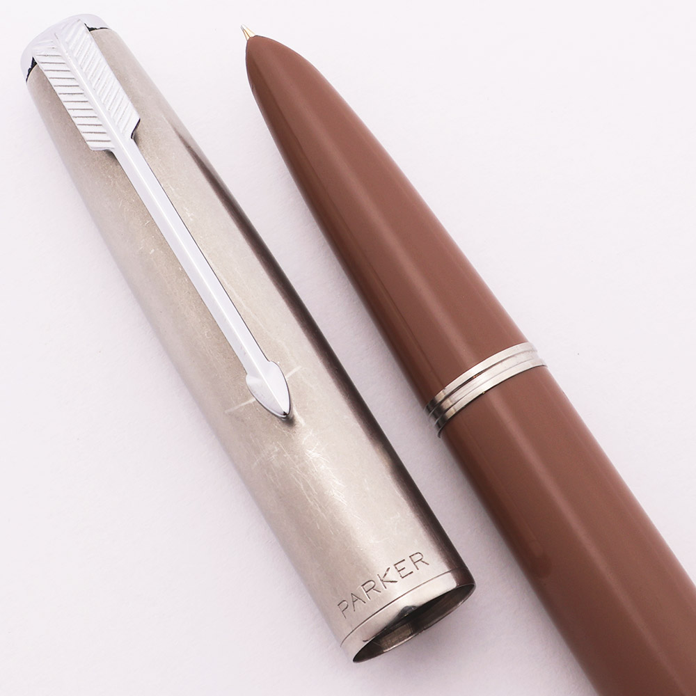 Color Cocoa body with a brushed "Lustraloy"cap. It has an arrow clip and a pearlescent cap jewel.