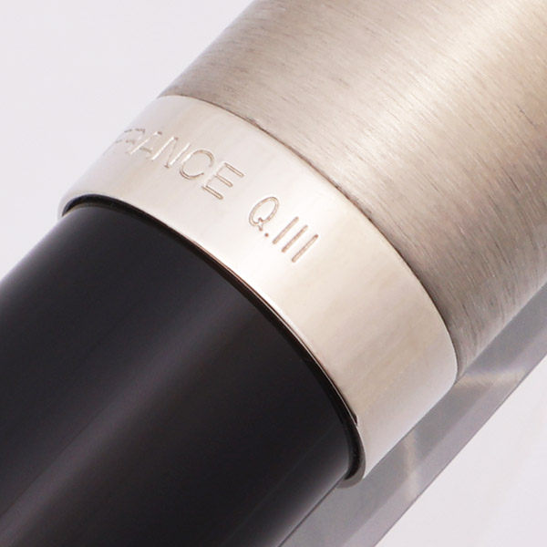 Color Velvety black barrel and section. Stainless steel cap with a matte brushed finish, and palladium-coated jewel and clip.